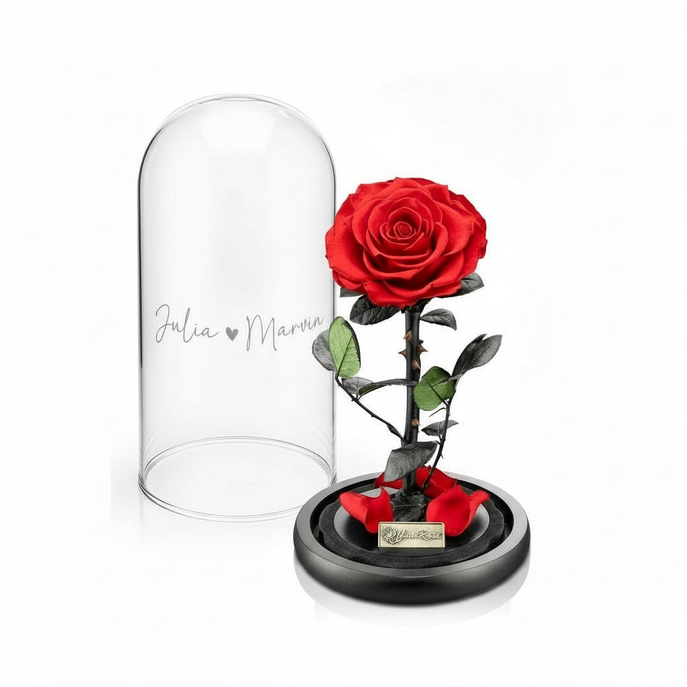 Konservierte Premium Rose im Glas mit Geschenkbox – Personalisiert mit Gravur