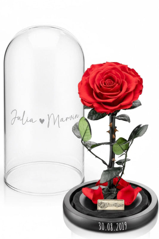 Personalisierte Rose mit Gravur von Namen und Datum - perfekt, um besondere Augenblicke zu feiern