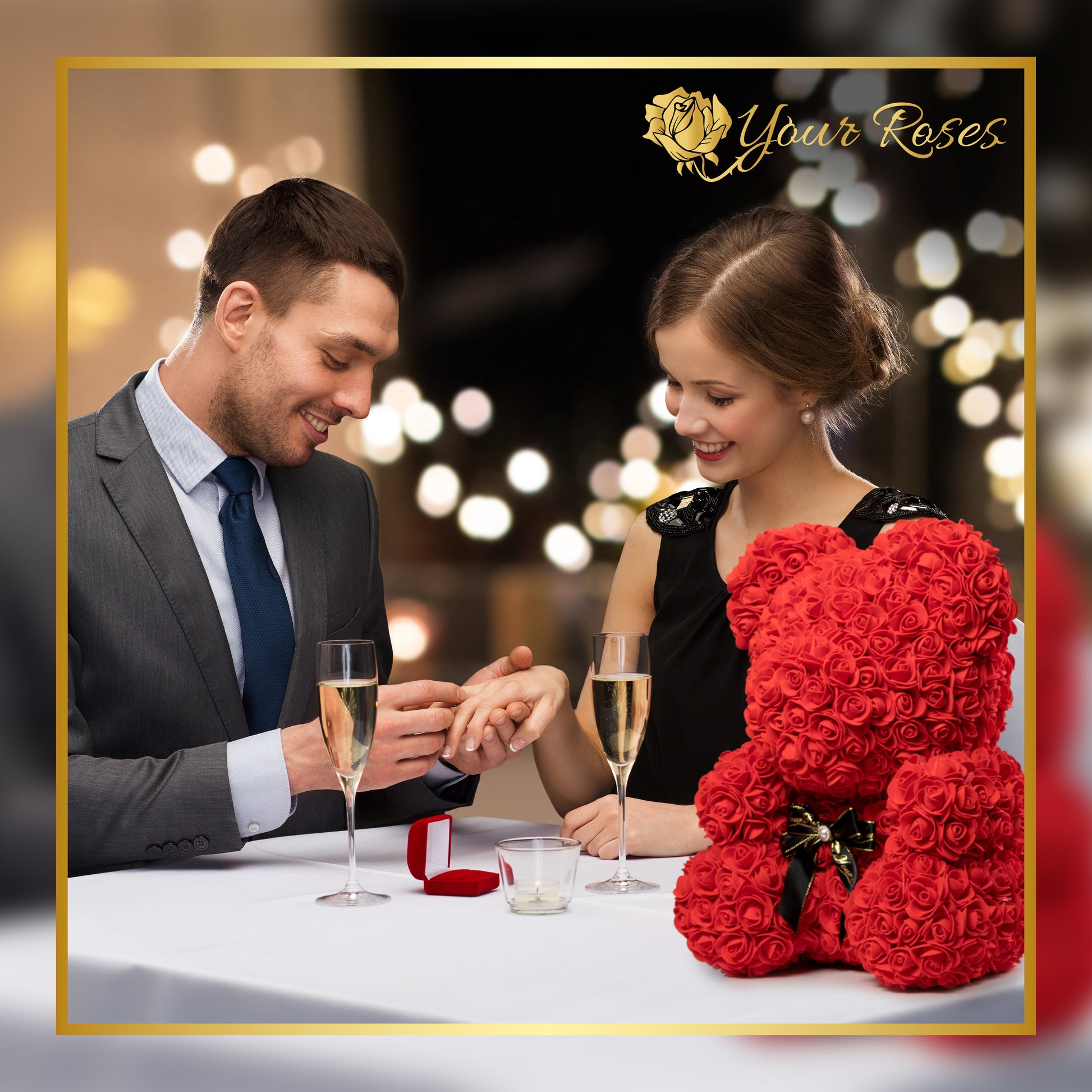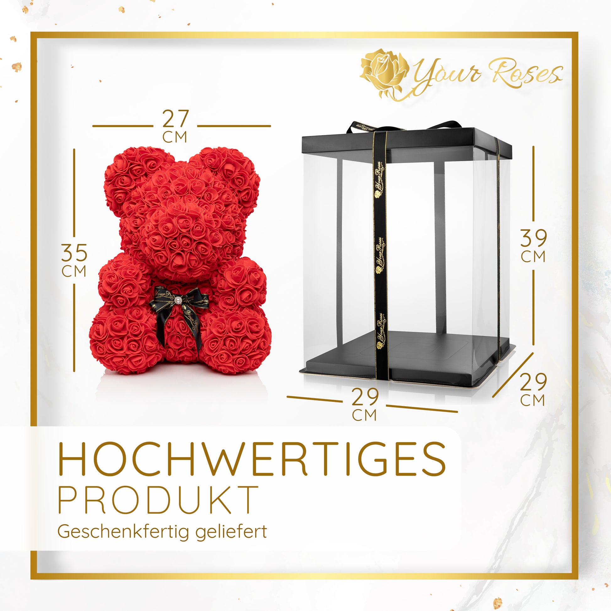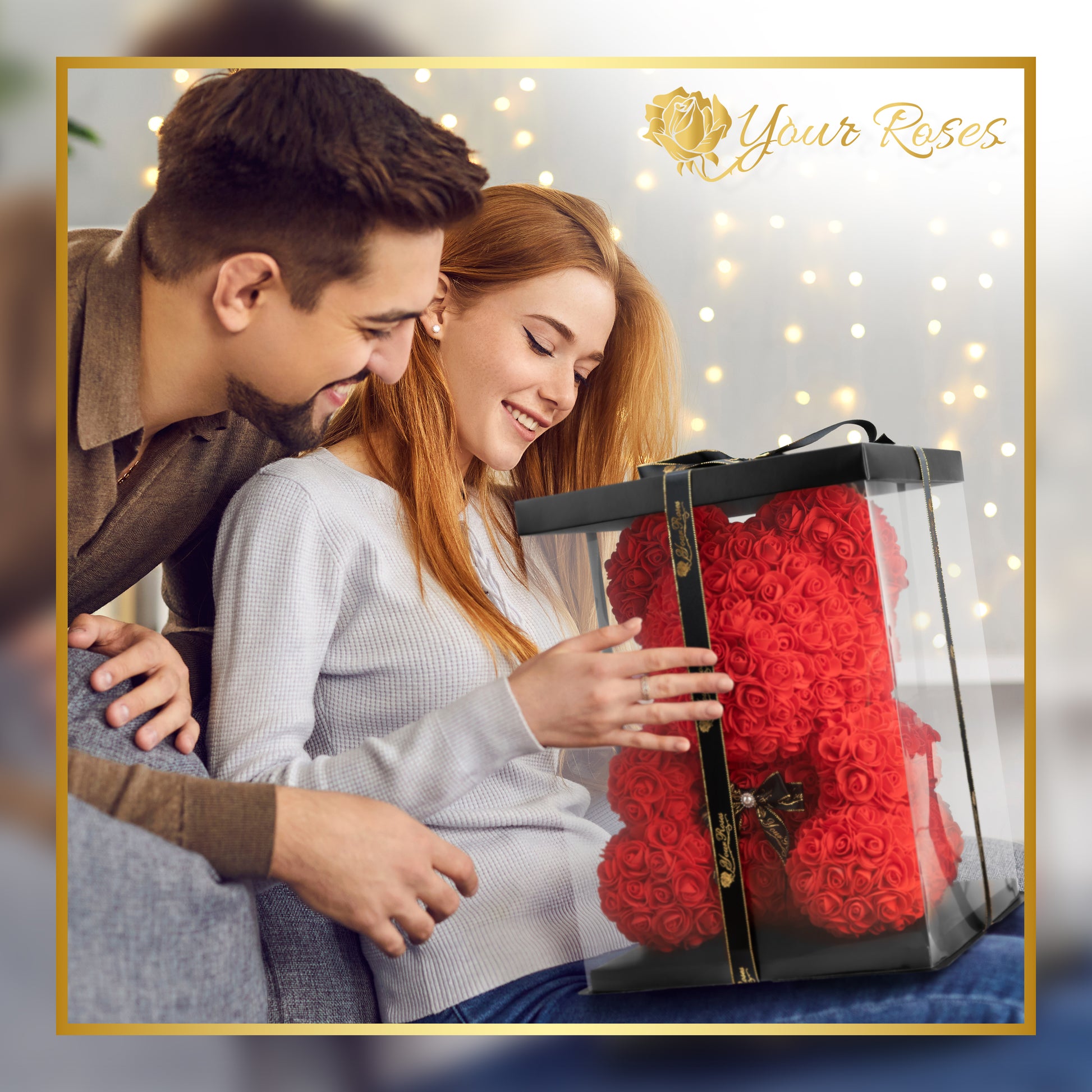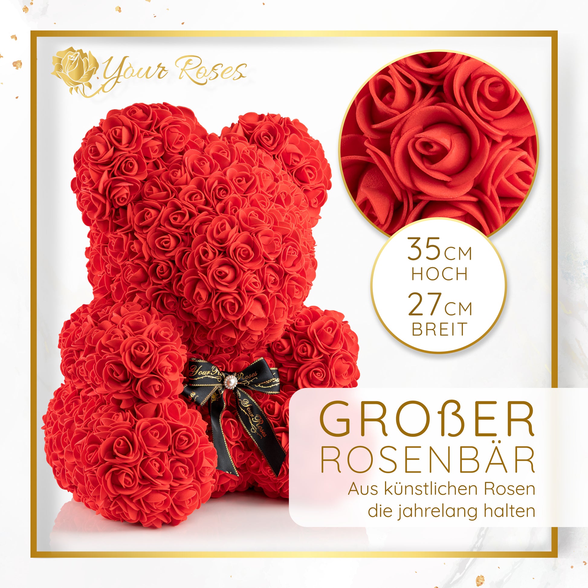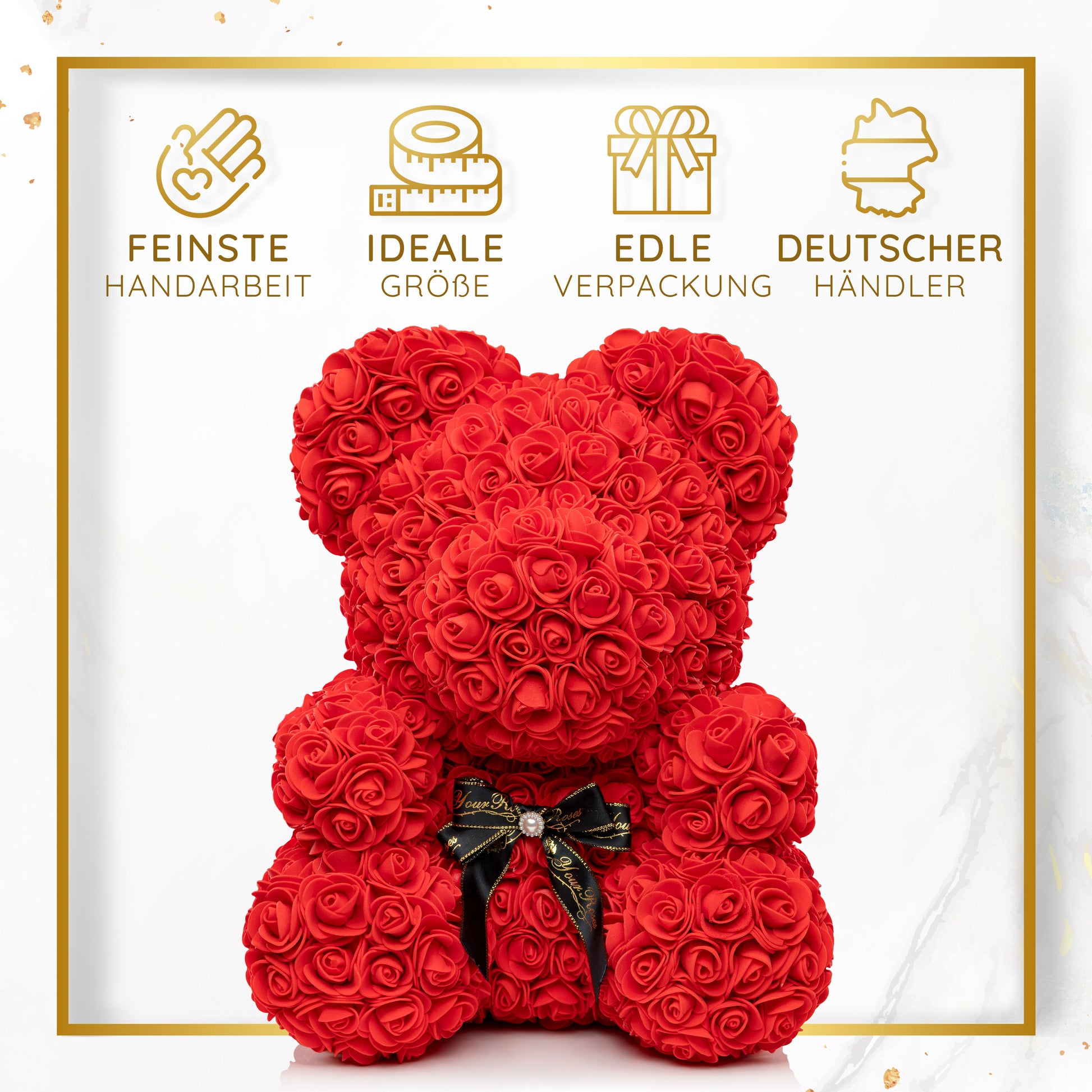 Met de prachtige rozenbeer als onvergetelijk teken van liefde voor de persoon die echt voor je betekent.